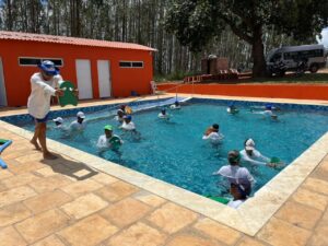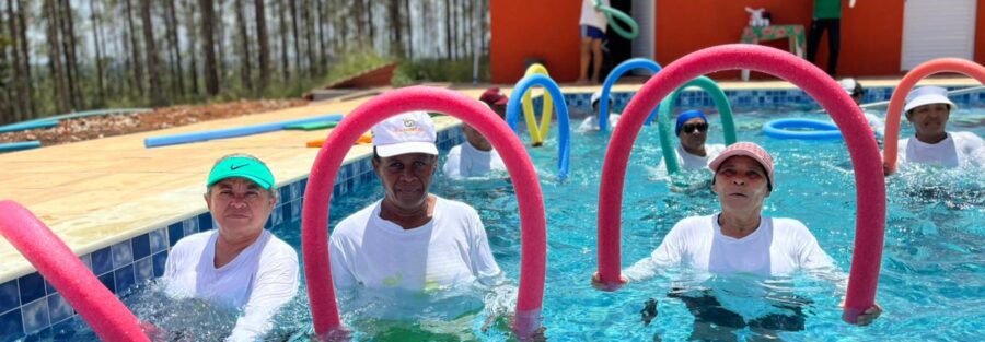 Os/as idosos/as do Projeto Ecoturismo 60+ Gerando Renda participaram de uma animada aula de hidroginástica, unindo bem-estar, saúde e integração, hoje (22).