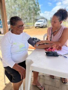 A programação também contou com uma roda de conversa sobre o Outubro Rosa, onde a idosa Miriam compartilhou um emocionante testemunho sobre sua vitória contra o câncer, inspirando todos os presentes com sua força e esperança.
