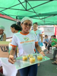 O Projeto Nos Trinques II realizou uma ação de mobilização e fortalecimento na Feira Agroecológica de Lagoa de Itaenga, promovendo integração entre comunidade, agricultores/as e práticas sustentáveis. A atividade contou com uma oficina gastronômica conduzida por Thaís Kaline, que preparou Caldinho de Macaxeira e Cocada de Batata Doce, ofertados aos/às consumidores/as para degustação.