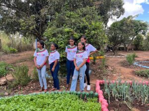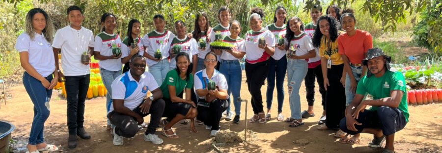Para encerrar a atividade, os adolescentes colocaram a mão na terra e realizaram o plantio de mudas de alface em garrafas PET. Cada participante levou sua muda para casa, incentivando a continuidade das práticas agroecológicas no dia a dia.
