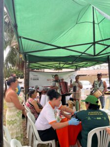 Além disso, os clientes da feira tiveram acesso a serviços de saúde, como aferição da pressão arterial e glicemia, reforçando o cuidado integral com o bem-estar dos participantes.