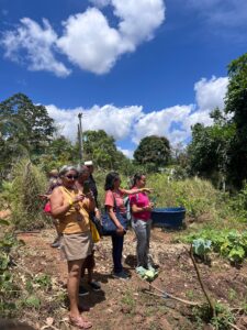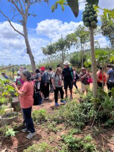 O grupo visitou o Sítio Recanto da Felicidade, onde pôde conhecer de perto o processo de produção dos alimentos comercializados na feira e realizar o controle social dos produtos. A vivência foi marcada pelo contato direto com a terra, pela troca de saberes e pela valorização da produção agroecológica e sustentável.