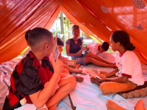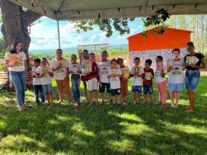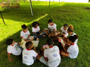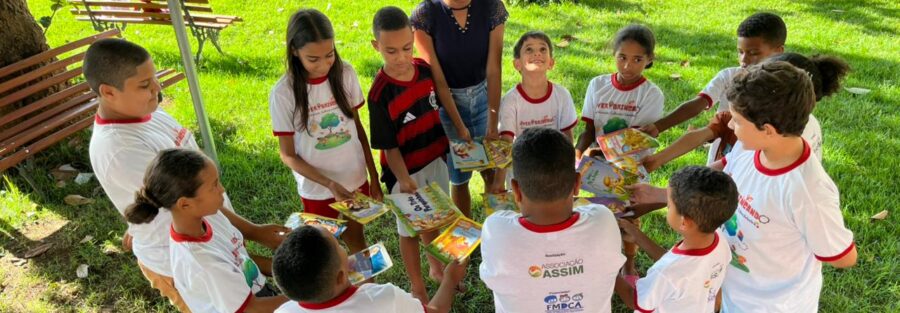 As crianças do Projeto Viver Brincando participaram, nesta quarta-feira (23), de uma atividade especial alusiva ao Dia do Livro, vivenciando um momento criativo e cheio de imaginação no ASSIM – Espaço Ecológico e Pousada.