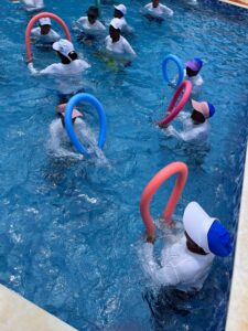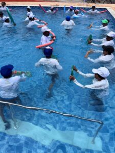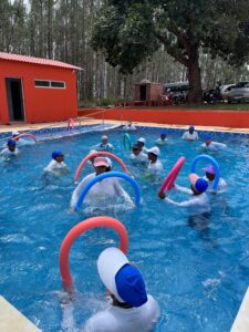 Os/as idosos/as do Projeto Ecoturismo 60+ Gerando Renda, desenvolvido pela ASSIM, participaram hoje (05) de uma animada atividade de hidroginástica, reafirmando o compromisso do projeto com a promoção da saúde, da integração e da qualidade de vida.