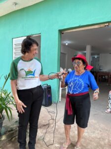 Encerrando o roteiro, os/as idosos/as estiveram na sede da ASSIM, onde participaram de um momento de avaliação da visita, de uma apresentação institucional, de uma atividade cultural e da tradicional Feira Agroecológica, espaço de comercialização direta de produtos e artesanato local.