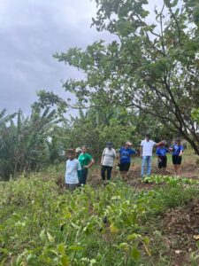 A visita teve início no Sítio das Alegrias, onde o grupo conheceu o quintal produtivo, o modelo de produção agroecológica desenvolvido pela família e as tecnologias alternativas utilizadas na propriedade. Os participantes também ouviram a história da família anfitriã e participaram de uma oficina prática de gastronomia sustentável, aprendendo a preparar um delicioso sorvete natural de banana e goiaba.