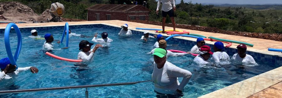 Foi um momento especial: a aula inaugural da nova piscina da ASSIM, utilizada pela primeira vez nas atividades do Projeto Ecoturismo 60+ Gerando Renda, hoje (15).