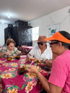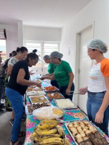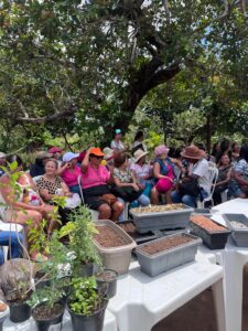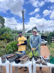 O encontro começou com um acolhedor café da manhã e seguiu no Sítio Machados, onde aconteceu uma roda de conversa sobre o projeto, além de uma oficina prática sobre hortas em pequenos espaços, conduzida pelos técnicos de campo Vandeilson e Renam.