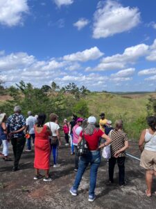 No turno da tarde, o grupo visitou o Sítio das Alegrias, propriedade da agricultora Rosinete, integrante do Espaço Agroecológico. No local, puderam conhecer a horta, a cisterna calçadão e encerrar o dia com um momento de cultura e encantamento: a contação da história do Boi Coragem, que narra a trajetória da ASSIM.