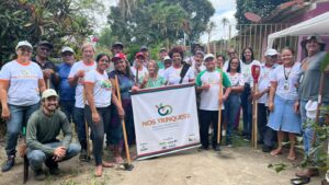 O momento proporcionou troca de saberes e a prática da instalação de uma unidade produtiva que une preservação ambiental, recuperação do solo e produção de alimentos saudáveis, fortalecendo a agricultura familiar e agroecológica da região. A família da agricultora Creuza escolheu as espécies de mudas que foram plantadas e os/as agricultores/ as do Núcleo de Produção Agroecológica de Paudalho colaboraram com a implementação do SAF.