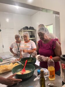 Durante a oficina, os participantes colocaram a mão na massa no preparo das receitas, com destaque para a torta de macaxeira e a torta de espinafre, valorizando ingredientes cultivados nas próprias hortas agroecológicas. A atividade também incentivou o aproveitamento integral dos alimentos, reduzindo desperdícios e promovendo práticas sustentáveis.