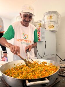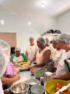 Durante a oficina, os participantes se envolveram diretamente na produção das receitas, vivenciando na prática novas possibilidades de preparo e aproveitamento dos alimentos. O momento foi marcado pelo entusiasmo e pela troca de experiências, com destaque para a qualidade e o sabor das preparações desenvolvidas.