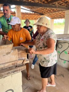 O grupo visitou o Sítio dos Belos e o Sítio Machados, onde vivenciou de perto a rotina da casa de farinha, conheceu a horta, escutou a história da família agricultora e aprendeu sobre o modelo de produção agroecológica que fortalece a sustentabilidade no campo. A alimentação do dia foi servida pelo Sítio das Alegrias, com um cardápio saudável, regional e preparado com carinho.