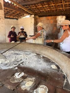O grupo visitou o Sítio dos Belos e o Sítio Machados, onde vivenciou de perto a rotina da casa de farinha, conheceu a horta, escutou a história da família agricultora e aprendeu sobre o modelo de produção agroecológica que fortalece a sustentabilidade no campo. A alimentação do dia foi servida pelo Sítio das Alegrias, com um cardápio saudável, regional e preparado com carinho.
